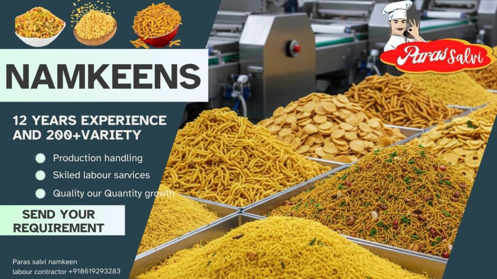 में Paras salvi namkeen labour contractor namkeen manufacturing production consulting 12yars experience 200+ namkeen verayti